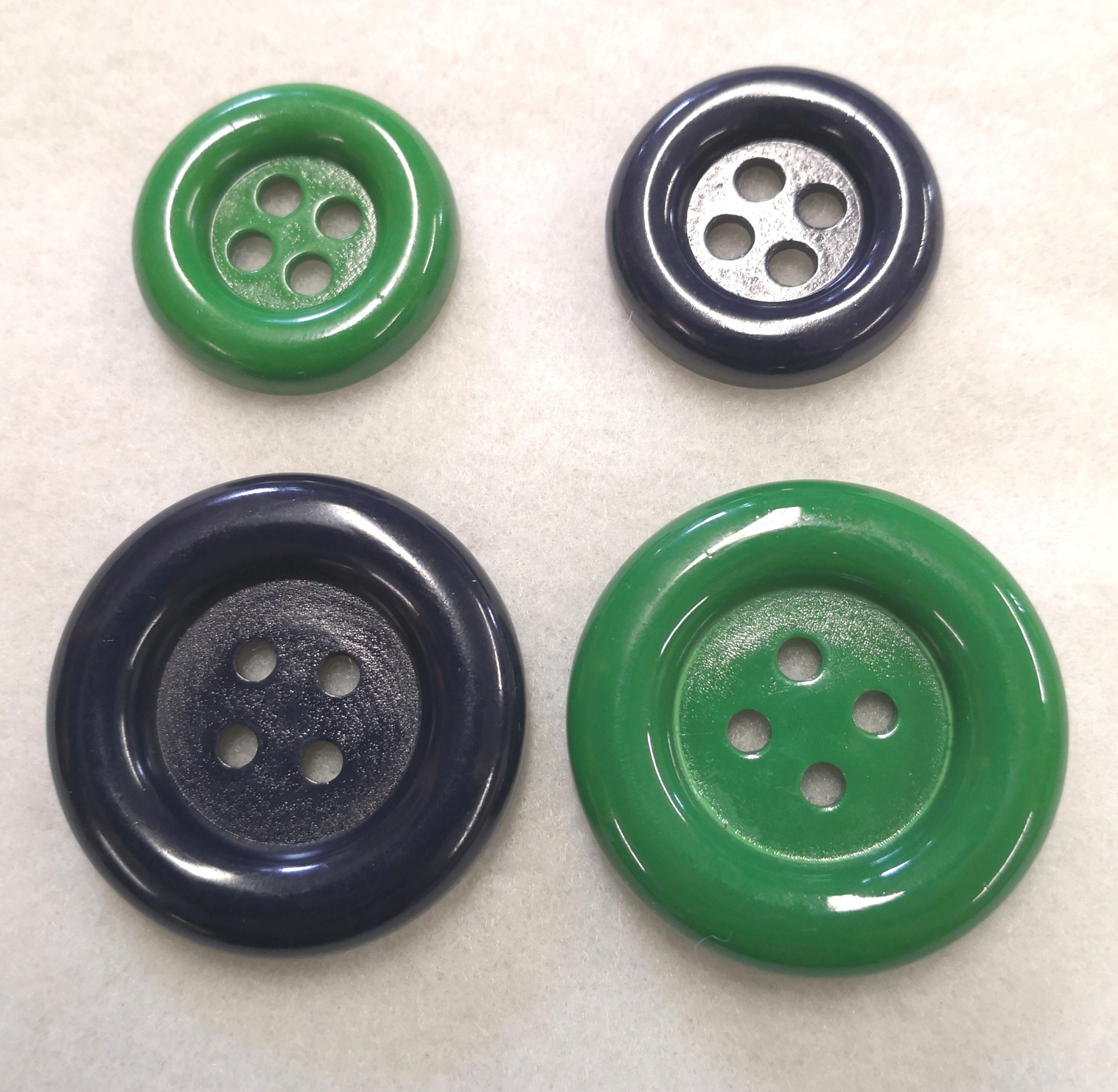 Muovinen 4-reikäinen tyylikäs nappi. Napin läpimitta on 50mm ja paksuus noin 9mm.