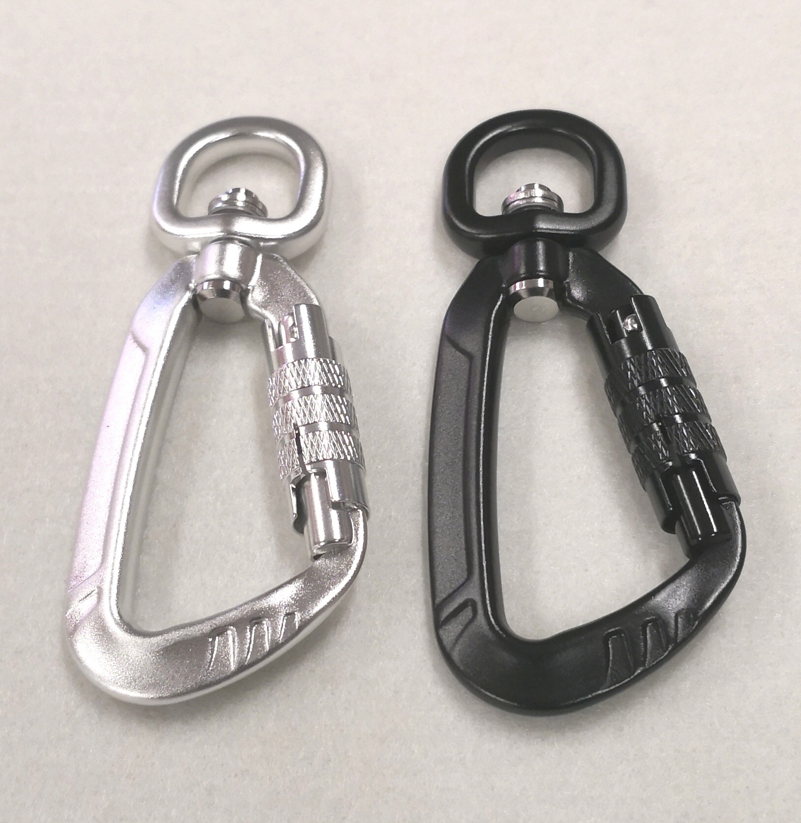 Alumiininen todella kevyt Twistlock karabiinilukko on helppokäyttöinen, turvallinen ja hyvin kestävä ratkaisu monenlaiseen lukitukseen, esimerkiksi erilaisten eläimien talutushihnoihin. Lukon lukitus avautuu vain kiertämällä ja jousi palauttaa lukitsimen automaattisesti lukittuun asentoon. Lukossa on erityisen suuri vetolujuus ja sitä ei saa helposti avattua vahingossa. Lukossa on pyörivä hihnalenkki. Haan kokonaispituus on noin 9cm ja leveys noin 4cm.
