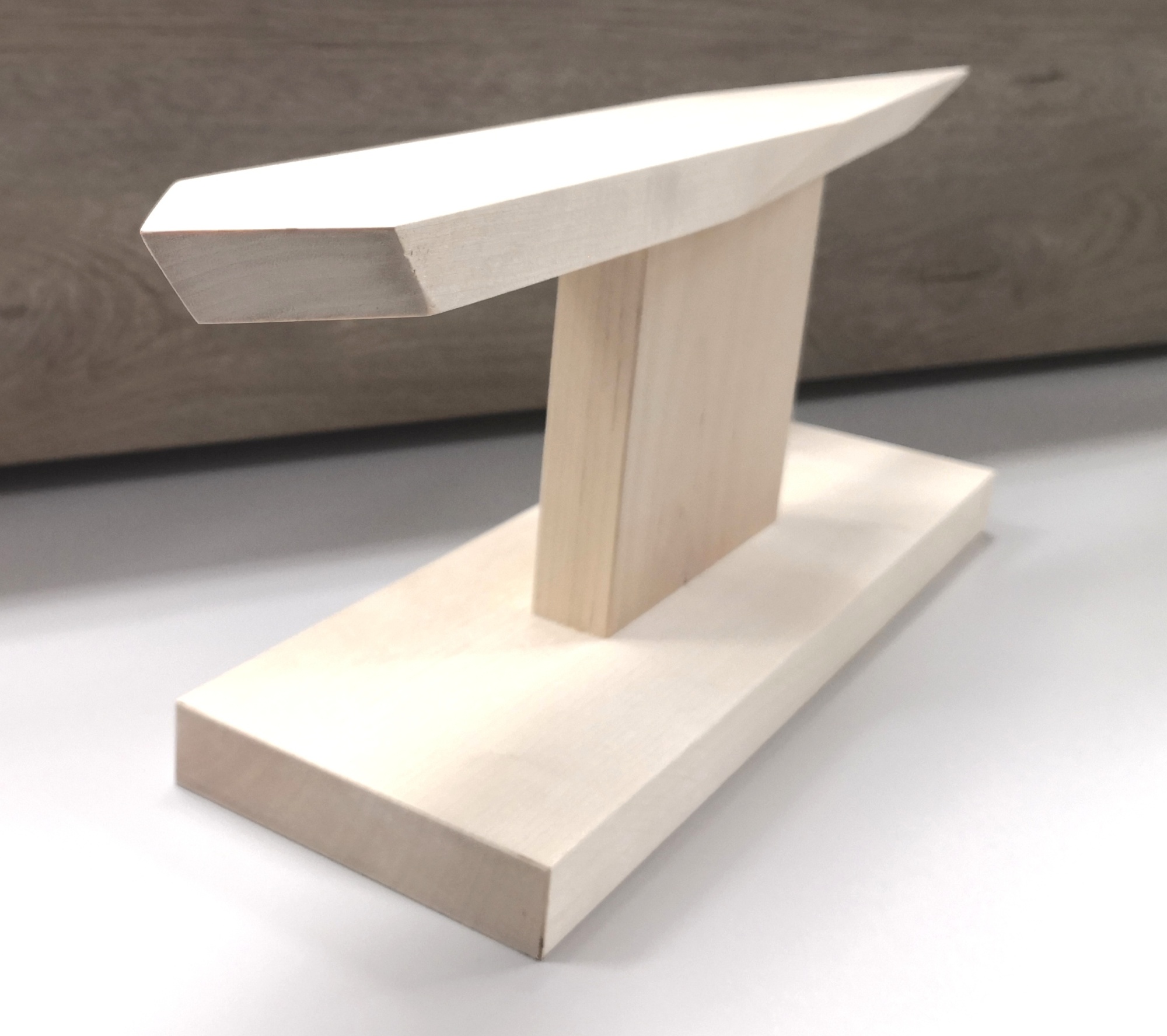 Perinteinen puinen silitystaso ja kulmanavaaja, jota kutsutaan meillä nimellä kantti. Tämä apulaite helpottaa kulmasaumojen avaamista (esimerkiksi paidan kauluksissa).