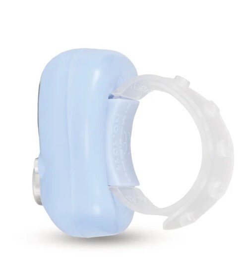 Helppokäyttöinen laskuri kiinnitetään sormeen siinä kiinni olevalla säädettävällä hihnalla, kuin kello ranteeseen.